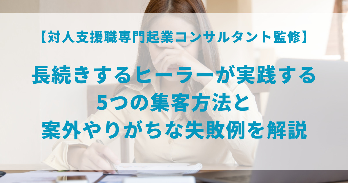 長続きするヒーラーが実践する5つの集客方法と案外やりがちな失敗例を解説【対人支援職専門起業コンサルタント監修】